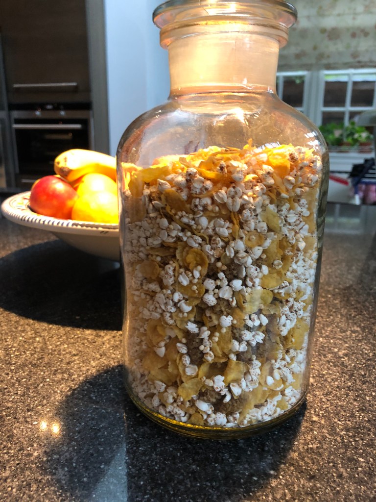 Iedereen heeft zo zijn voorkeuren voor het ontbijt. Zo vinden ze hier havermout pap wel lekker maar mijn jongste moet daar niks van hebben. Zij houdt van structuur. En wil geen vers fruit ergens doorheen. Dus op zoek naar iets anders, in dit geval waren we bij AH.